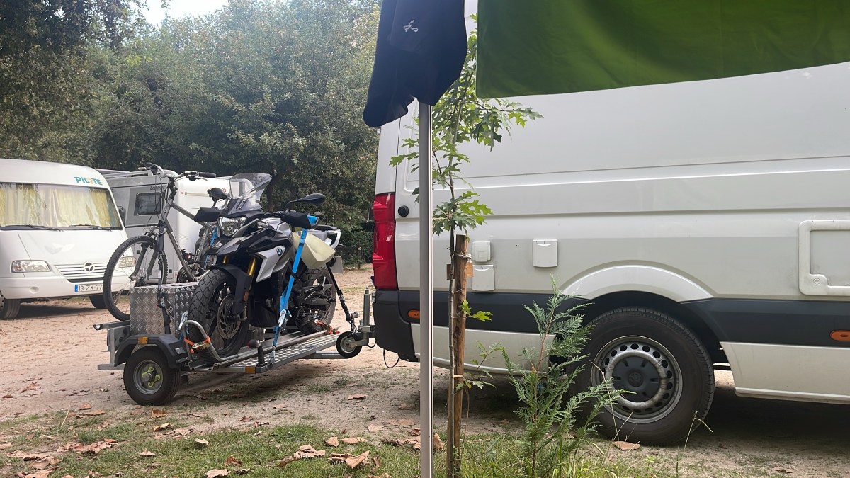 En ensamresande engelsman anlände. Med motorcykel och vanlig cykel på släp. Mycket prat följde. Detta är en av de trevligaste sakerna med husbilsåkande, alla olika människor man träffar och att få höra deras historier
