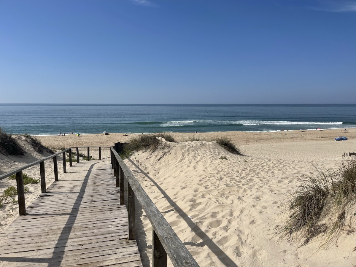 Vi landar vid Praia de Mira. En kommunal camping med allt som behövs (grå-och svartvattentömning, färskvatten, duschar och toaletter i mängder). Precis på läsidan av de enorma dyner som skapats av Atlanten.