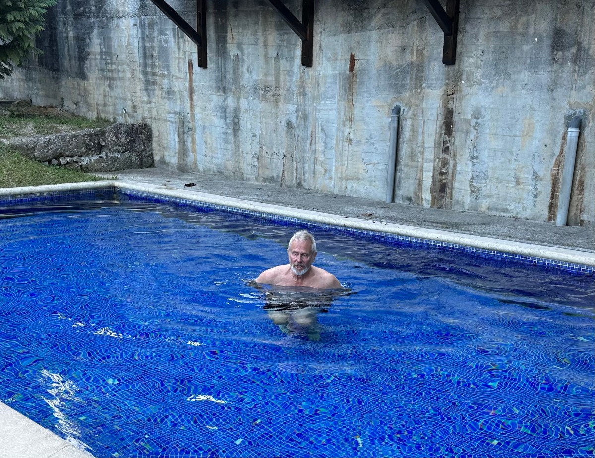 Det mest spännande som inträffade var nog att Tommy badade i poolen. Den fylls kontinuerligt med vatten från bergen, inga kemikalier således, och rätt sval…