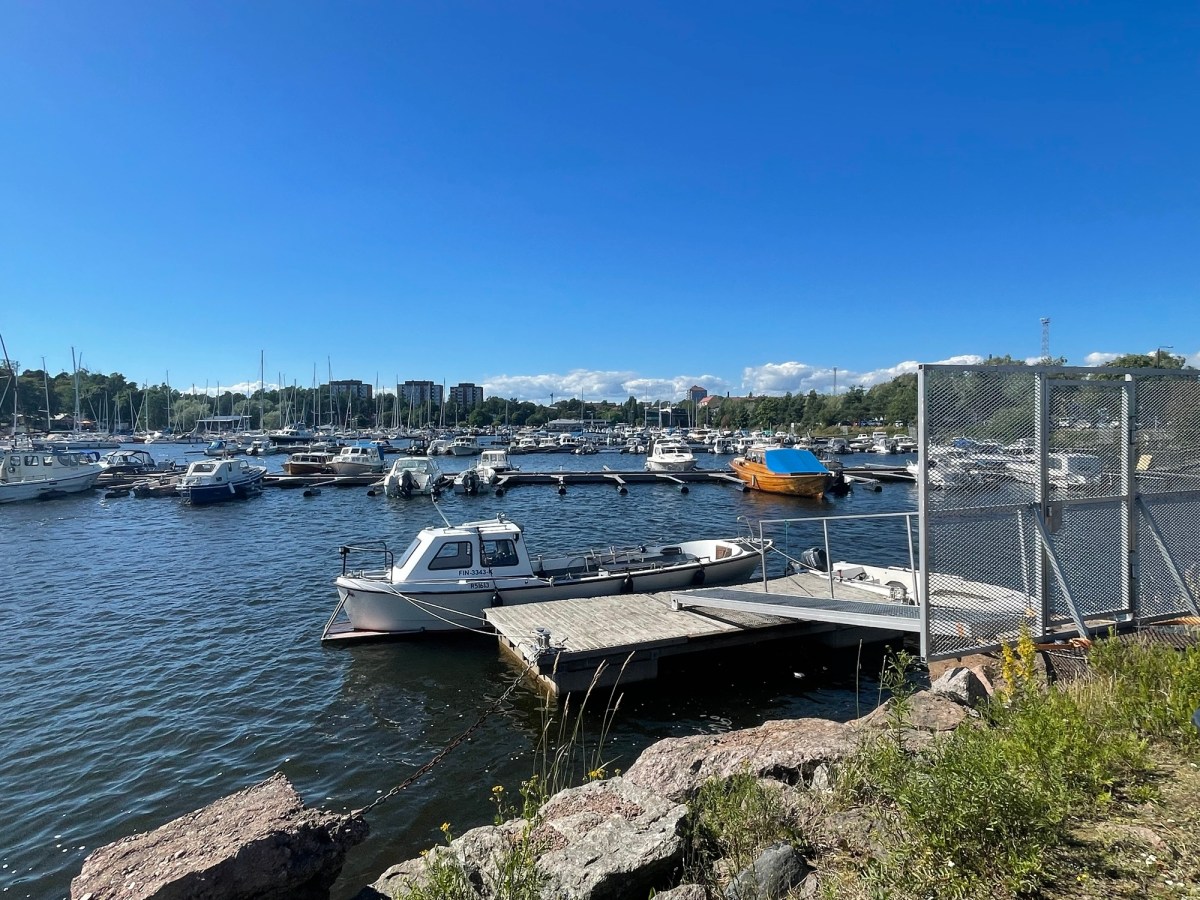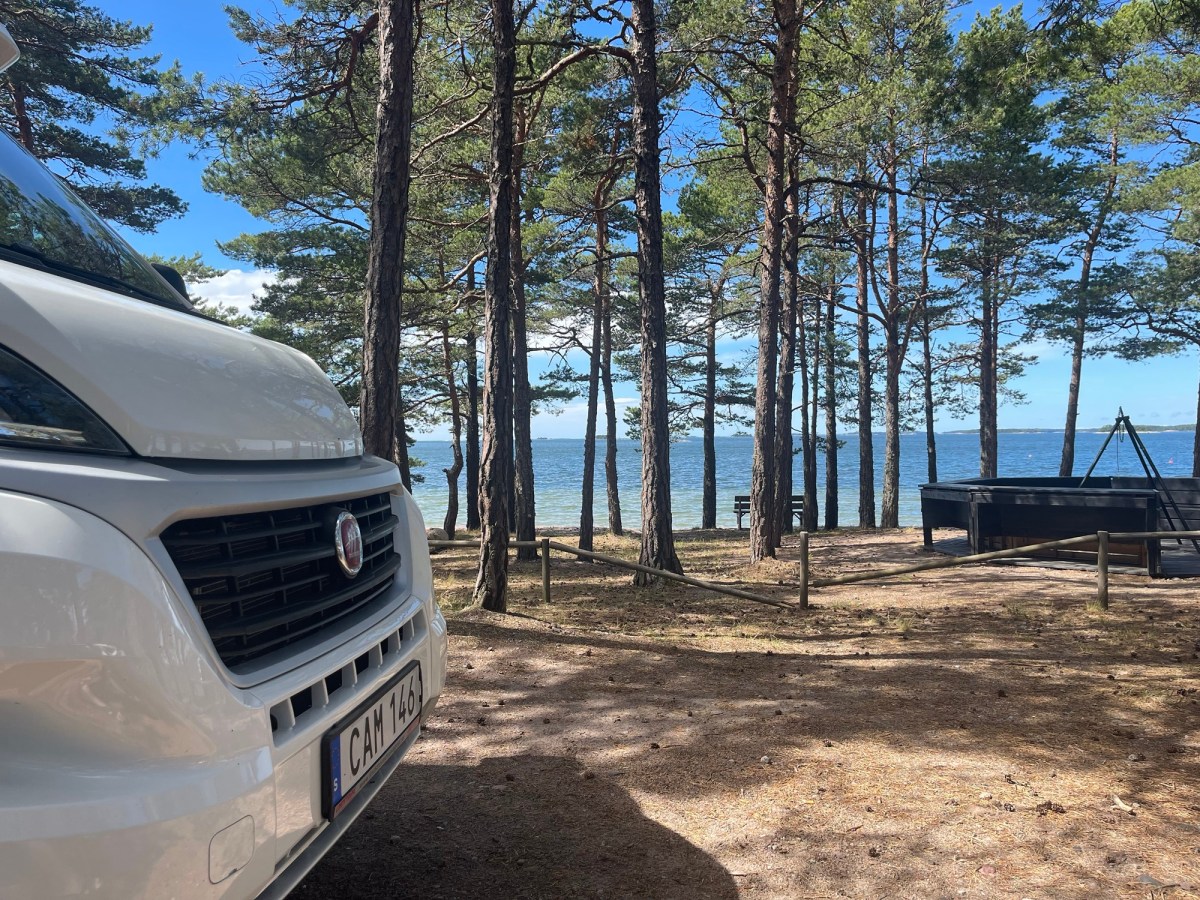En fin sak med Finland för en husbilsresenär är att det är tillåtet att parkera med husbil var som helst, förut om det uttryckligen står att det är förbjudet. Det innebär att man inte är tvungen att bo på camping varje natt. Vi hittade en gatuparkering designad för husbilar nere vid marinan. Här fanns gratis platser för 7 husbilar, perfekt för oss. Vatten var gratis att fylla i husbilen. Svartvattnet fick vi spara.