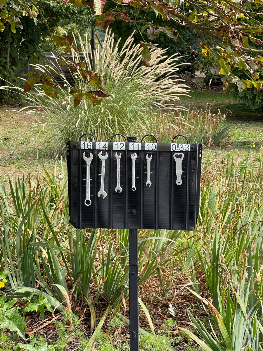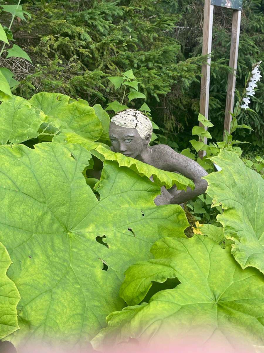 På väg mot kvällens ställplats stötte vi på en intressant konstutställning, ute i skogen.