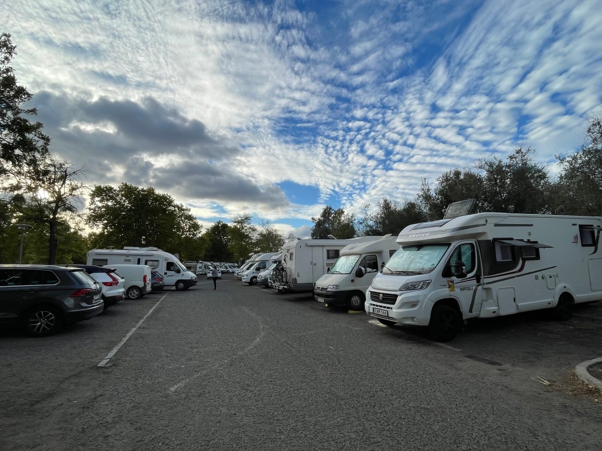Samma gäller i Spanien, själva ställplatsen är gratis, och om du vill ha el, kan du köpa en pollett i närheten, stoppa den i en automat och sedan kan du få el så länge du väljer.