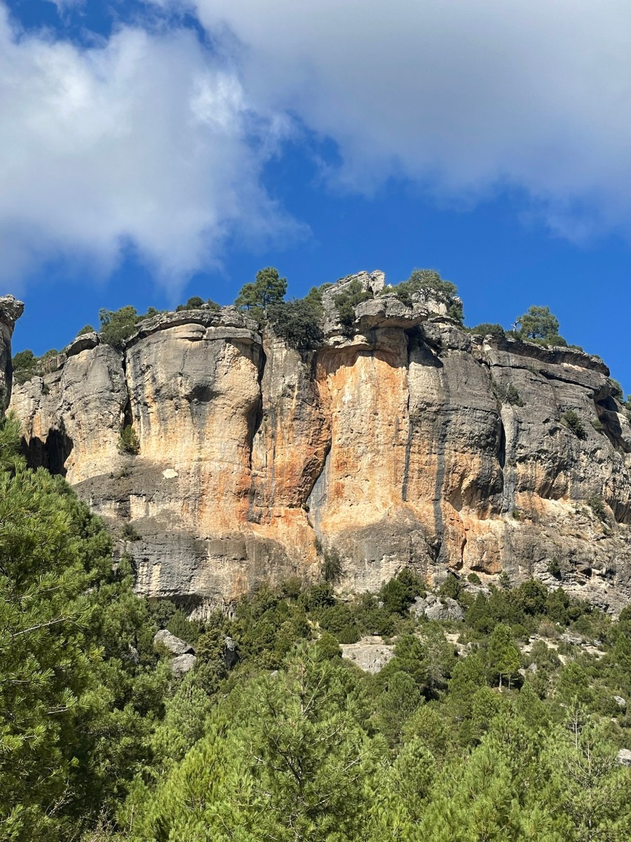 De oändliga olivlundarna som började i Andalusien fortsätter även när vi kommit upp på platån. Landskapet blir mer och mer bergigt. Olivträden klättrar upp och nerför kullarna ju högre upp vi kommer. Det börjar blåsa allt mer, och det börjar bli allt jobbigare att styra husbilen, eftersom den är ganska vindkänslig.