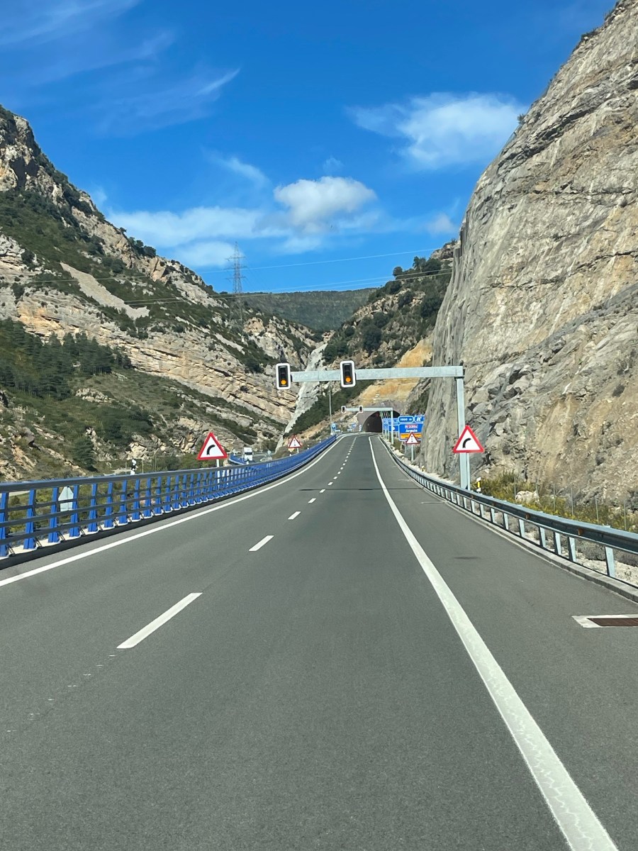 Sen verkar allt vara en lätt resa framåt. Vi seglar framåt på motorvägar utan tullar rakt mot Pyrenéerna. Jätttefina vägar i Spanien.