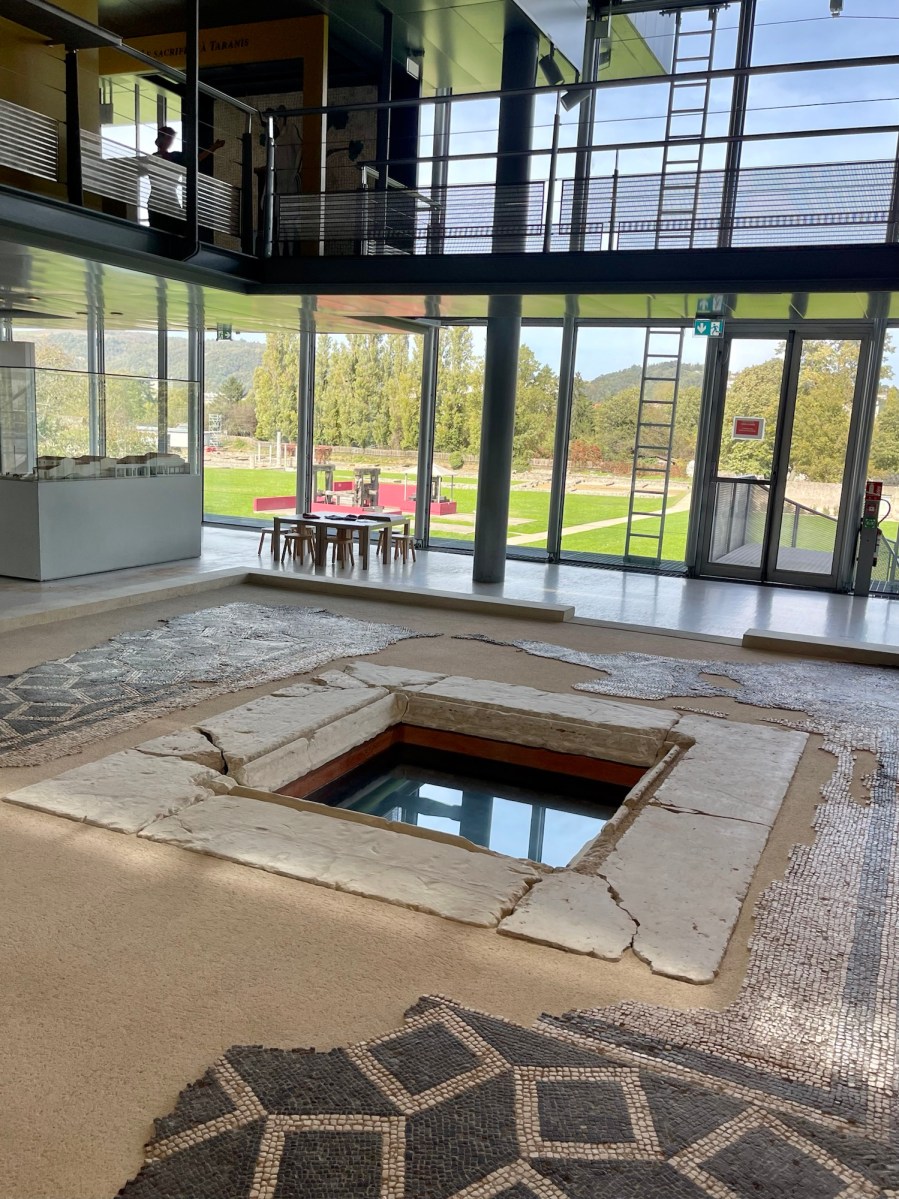 Vi är fortfarande i ett väldigt kuperat landskap med berg och kullar överallt, så efter den ganska jobbig promenad uppför för att besöka kyrkan som övervakar staden, tar vi oss ner till museet som ligger ihop med den stora utgrävningen av det romerska samhälle som byggdes här under första århundradet f.Kr.
