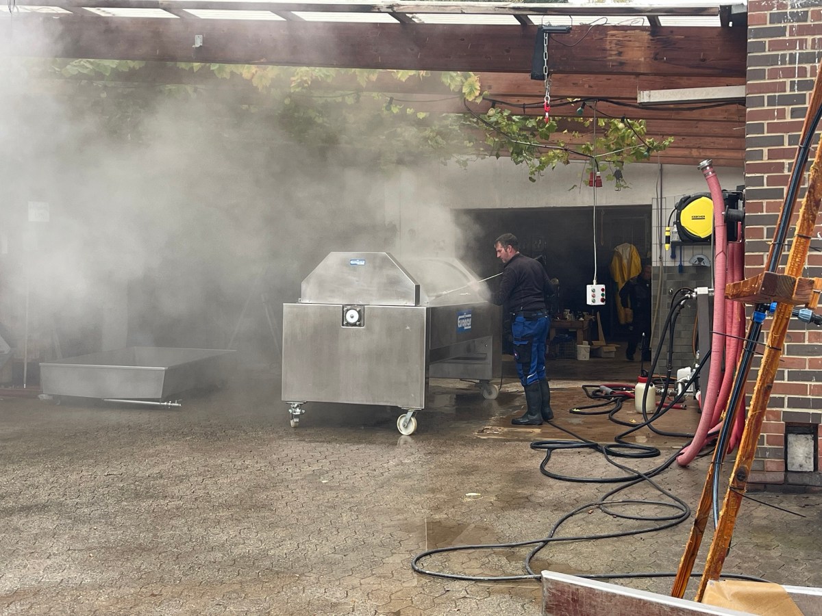 Vi kommer fram till Weingut Bollig Mūhlenhof i Maring-Noviand under eftermiddagen i ett blött och ruggigt väder. Husbilen parkerar vi under en stor platan, och sen börjar regnet vräka ner.