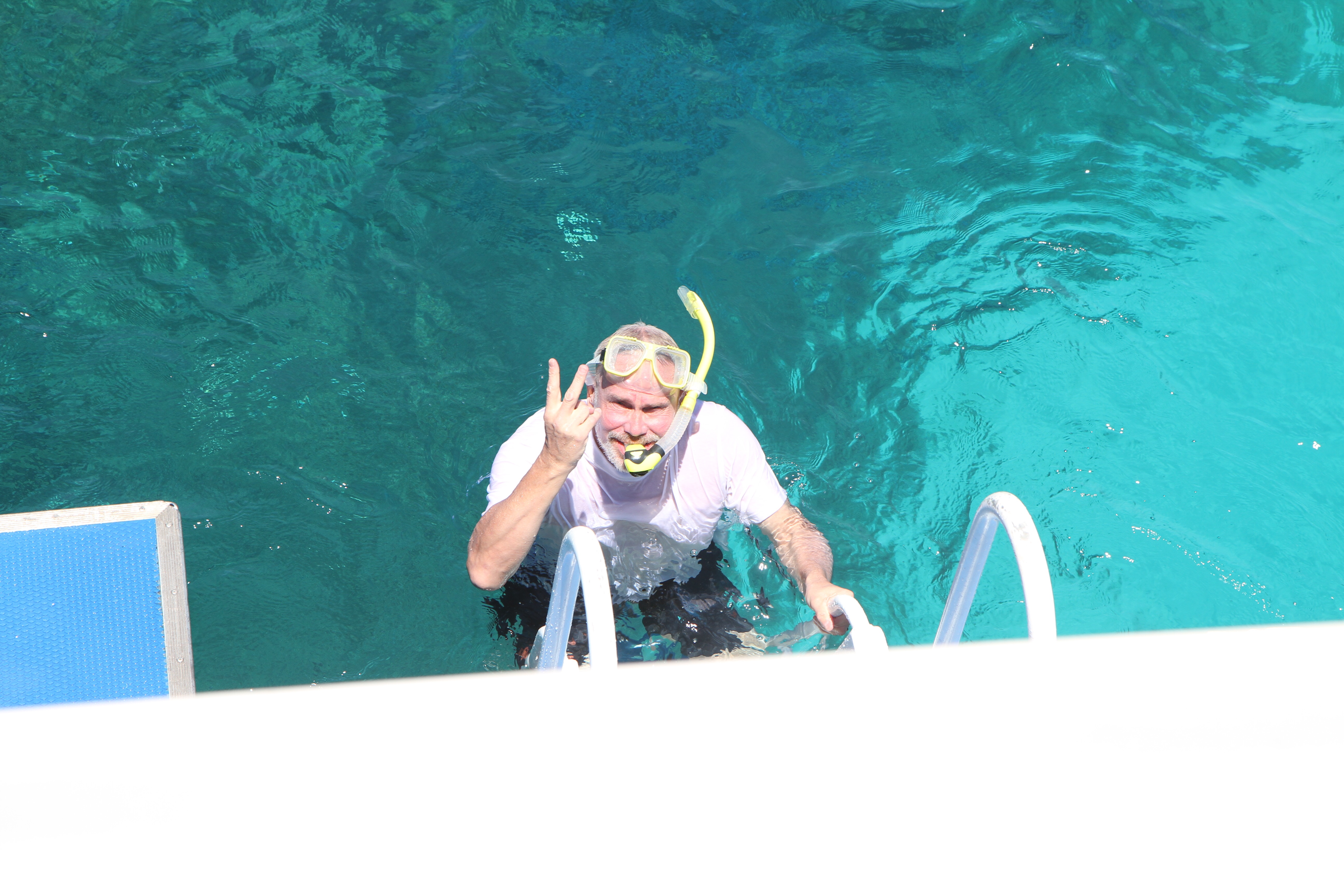 Men tänk er bara det, luften lika varm såsom den bästa svenska sommardag, solen, luften, dofterna, vattnet, som jag var tvungen doppa fötterna i, och som höll uppfriskande 19-20 grader antagligen. Vi besåg övriga båtar i marinan och konstaterade att i stort sett alla var betydligt större än samtliga på vår egen båtklubb.