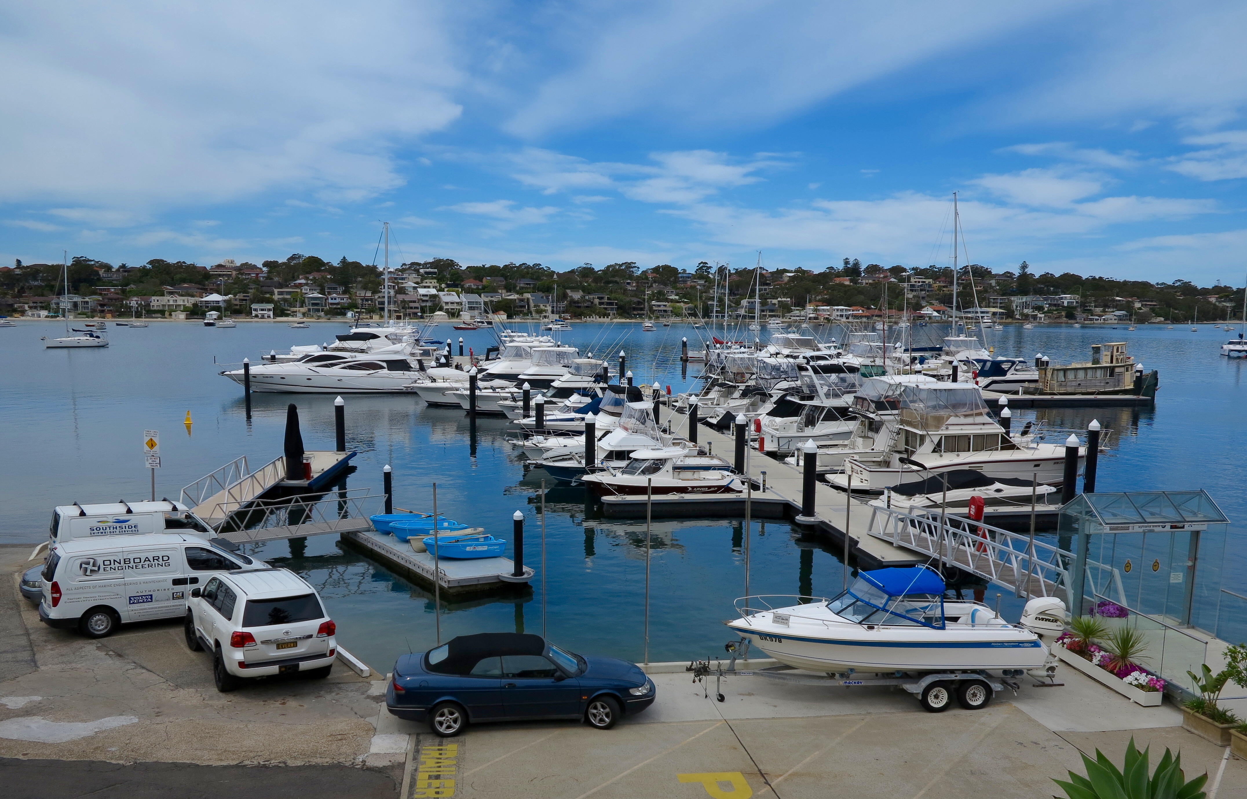 Roland och Ingrid hämtade oss på Cronulla station, och tog oss sedan till sin båtklubb. Där åt vi en gemensam god lunch vartefter vi inspekterade den tomma båtplatsen😉!