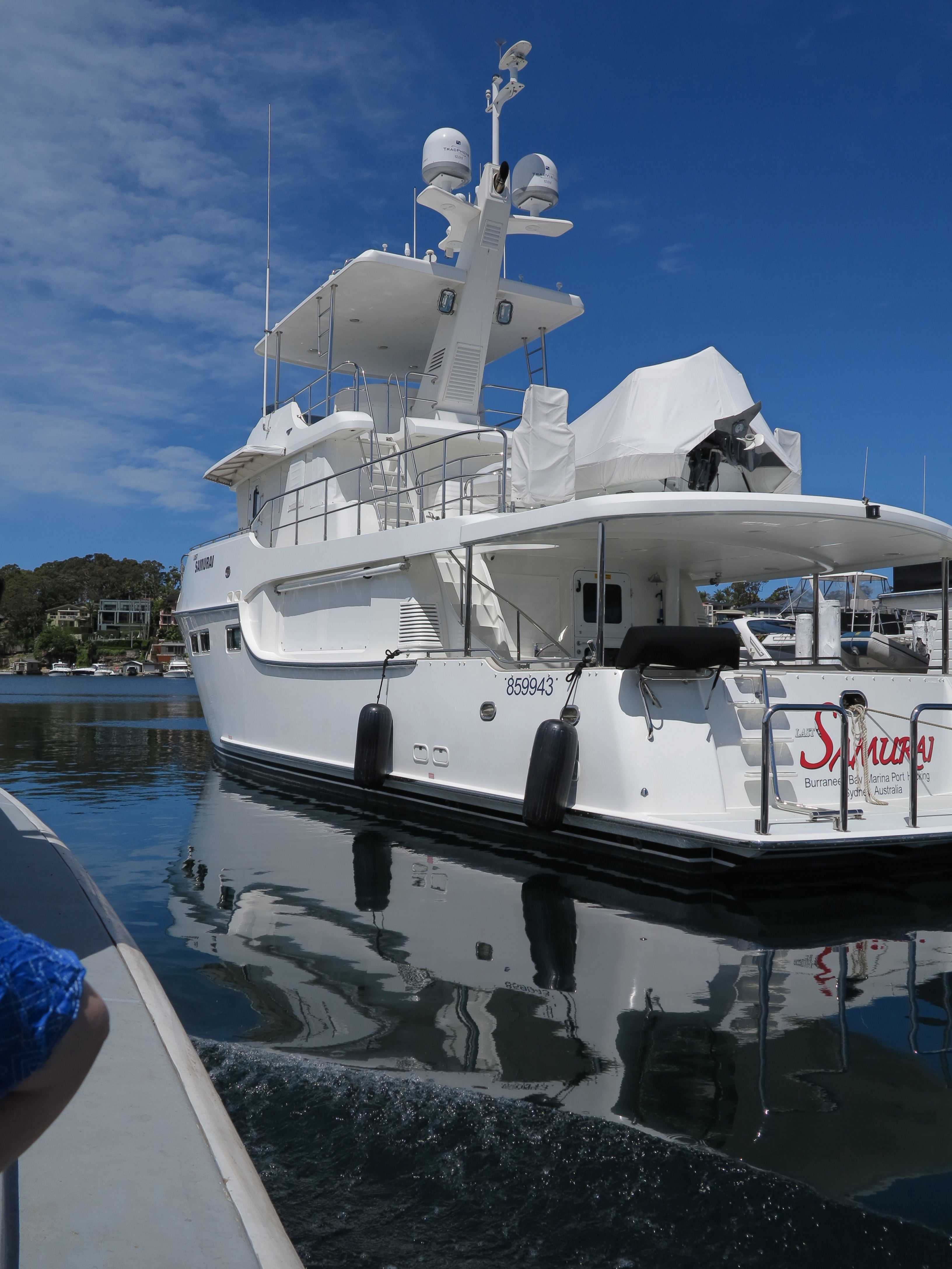 Vi fick också möjlighet att besöka ”Last Samurai” en 62-fots båt (skepp tycker jag) som ägaren nyligen kört hem över Stilla havet, från San Diego i Californien, via Hawaii. Dieseltankarna höll 9000 liter, förbrukningen var 3 l/Nm, vilket är väldigt bra, vår egen båt tar 2 l/ Nm, vilket VI tycker är bra…