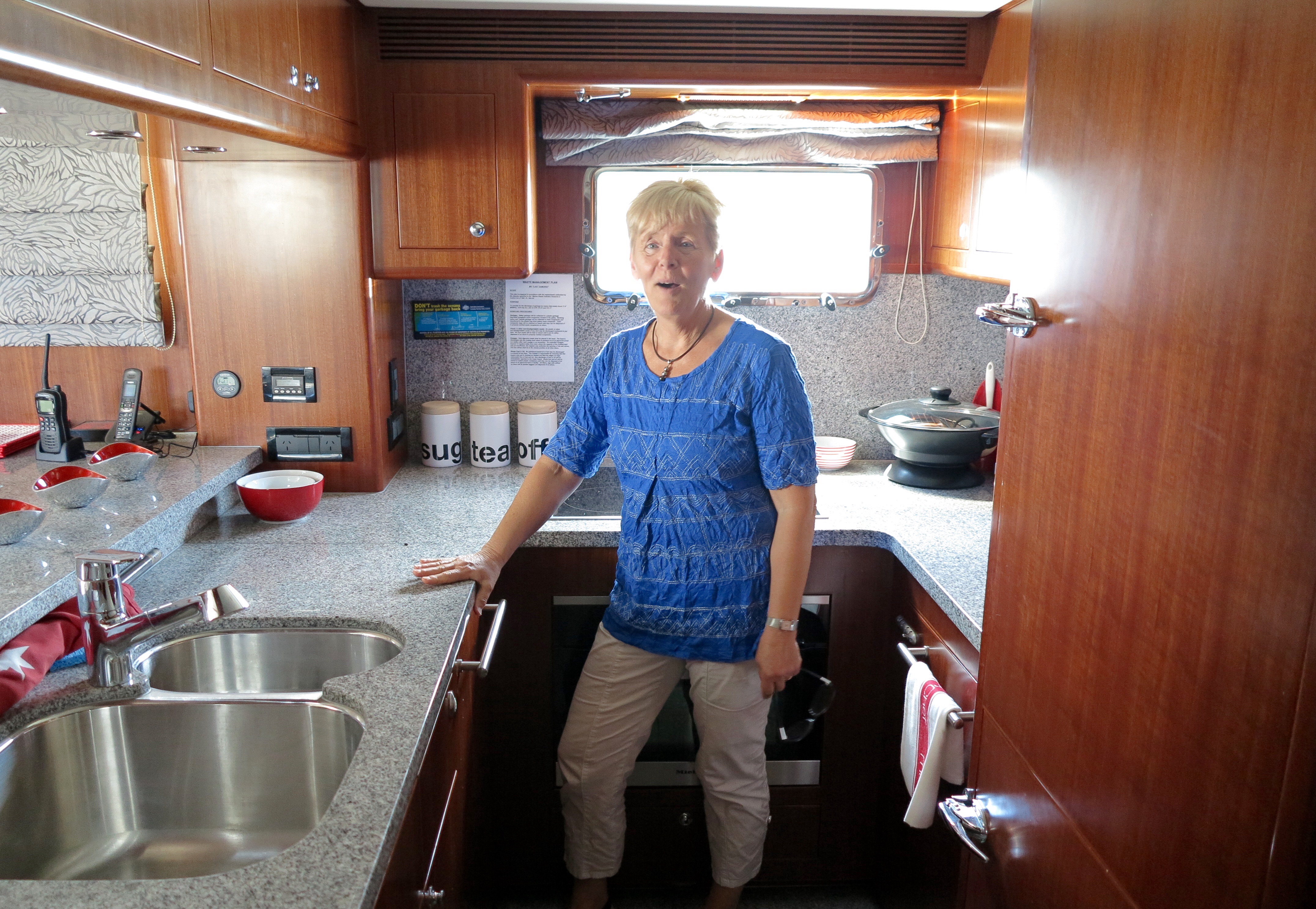 Jag vill bara informera om att ägaren är 83 år, rätt nyligen hjärtopererad med en ny klaff. Han hade insett att det var på tiden att realisera sina drömmar, så han gjorde slag i saken helt enkelt och skaffade sig sin drömbåt. Han har iofs ett helt livs erfarenhet av båtar, så han vet vad som krävs! Det var jättekul för Tommy och mig att få komma ombord på en så fin båt, den är verkligen fräsch, välbyggd och genomtänkt.