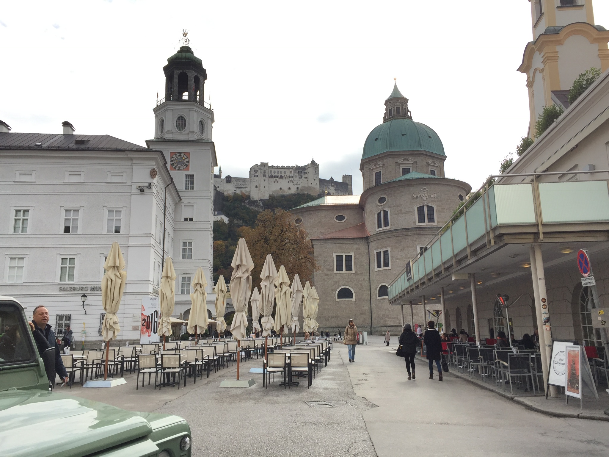 Salzburg är inte någon stor stad, ca 150 000 innevånare även om den är Österrikes 4:e stad. Den ligger otroligt vackert, genomflutet av floden Salzach och omgivet av höga berg, vilka redan har hunnit bli snötäckta.