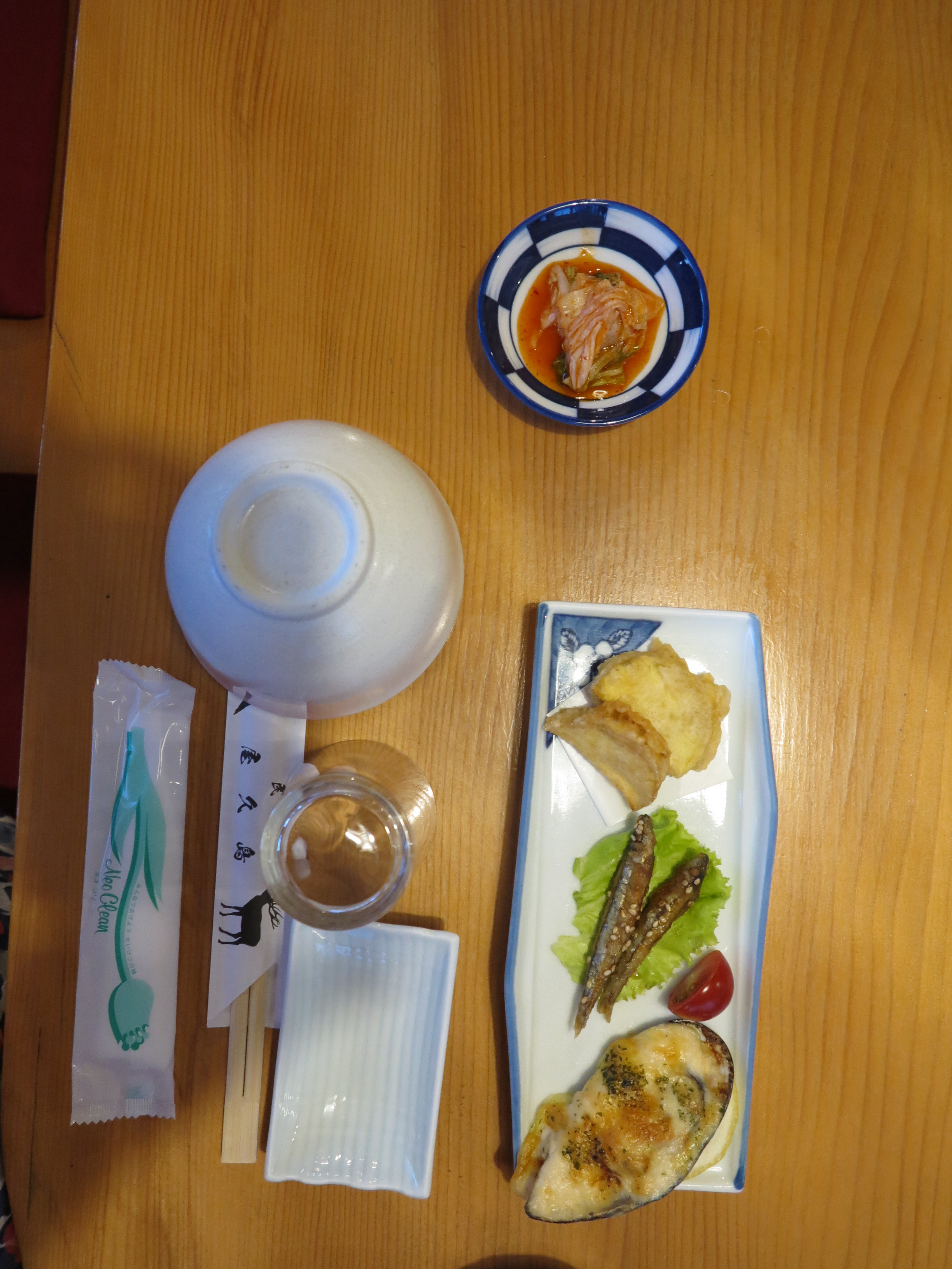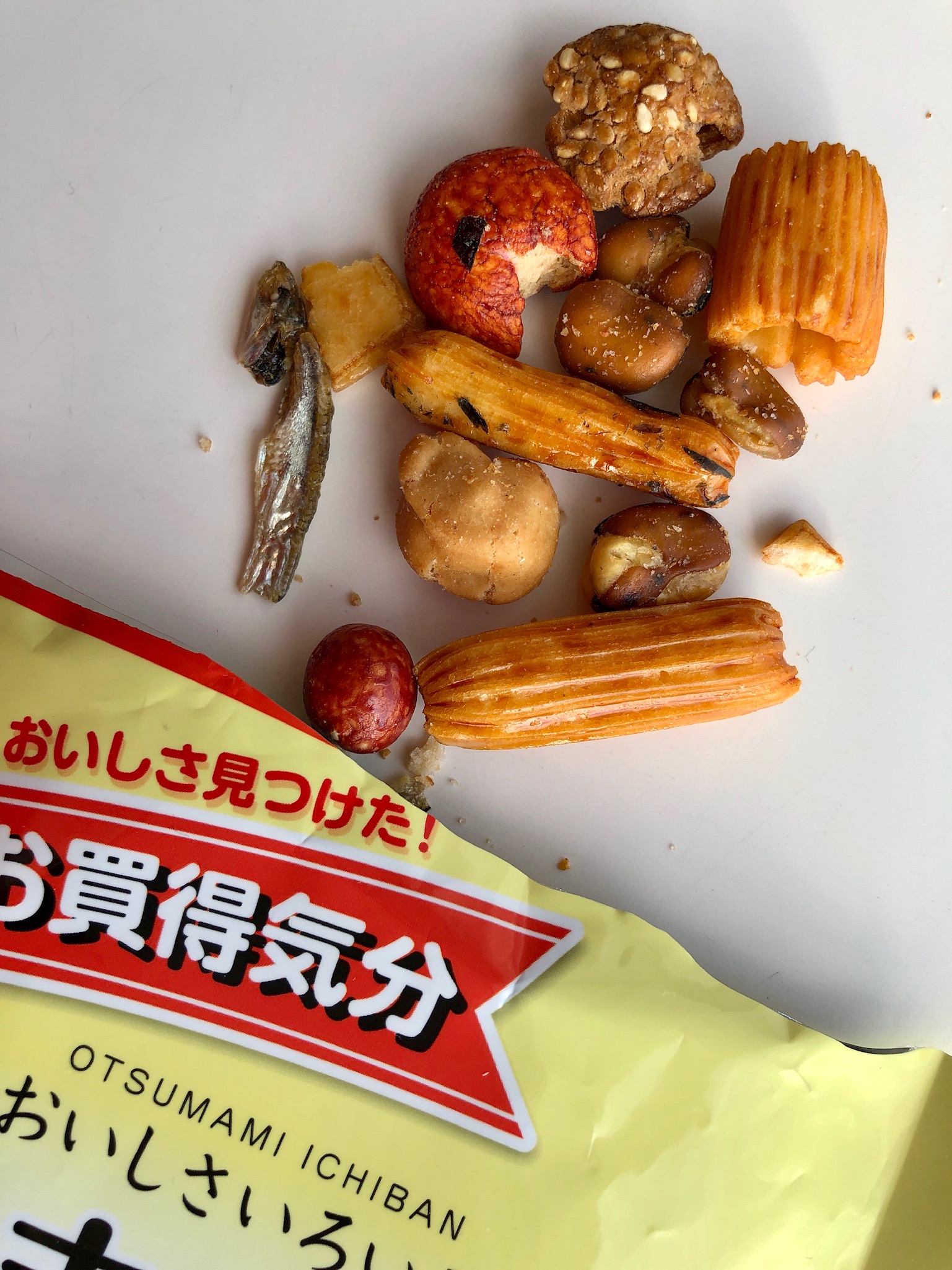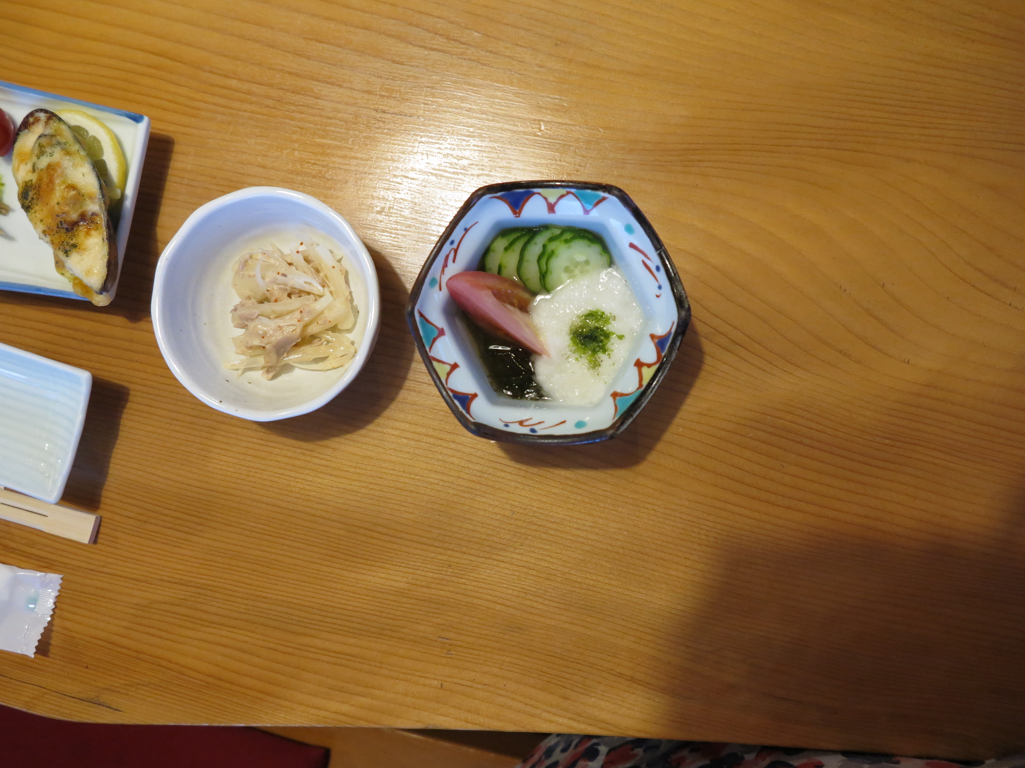 I kväll fick vi återigen en stor måltid med mängder av rätter. Jag har fått önskemål om att visa bilder på den mat vi äter, så nu kommer en kavalkad av det vi serverats ikväll här på Yakushima! vi tog lite snacks innan maten igår, men när en torkad fisk ramlade ut ur påsen drog vi gränsen, var inte gott!