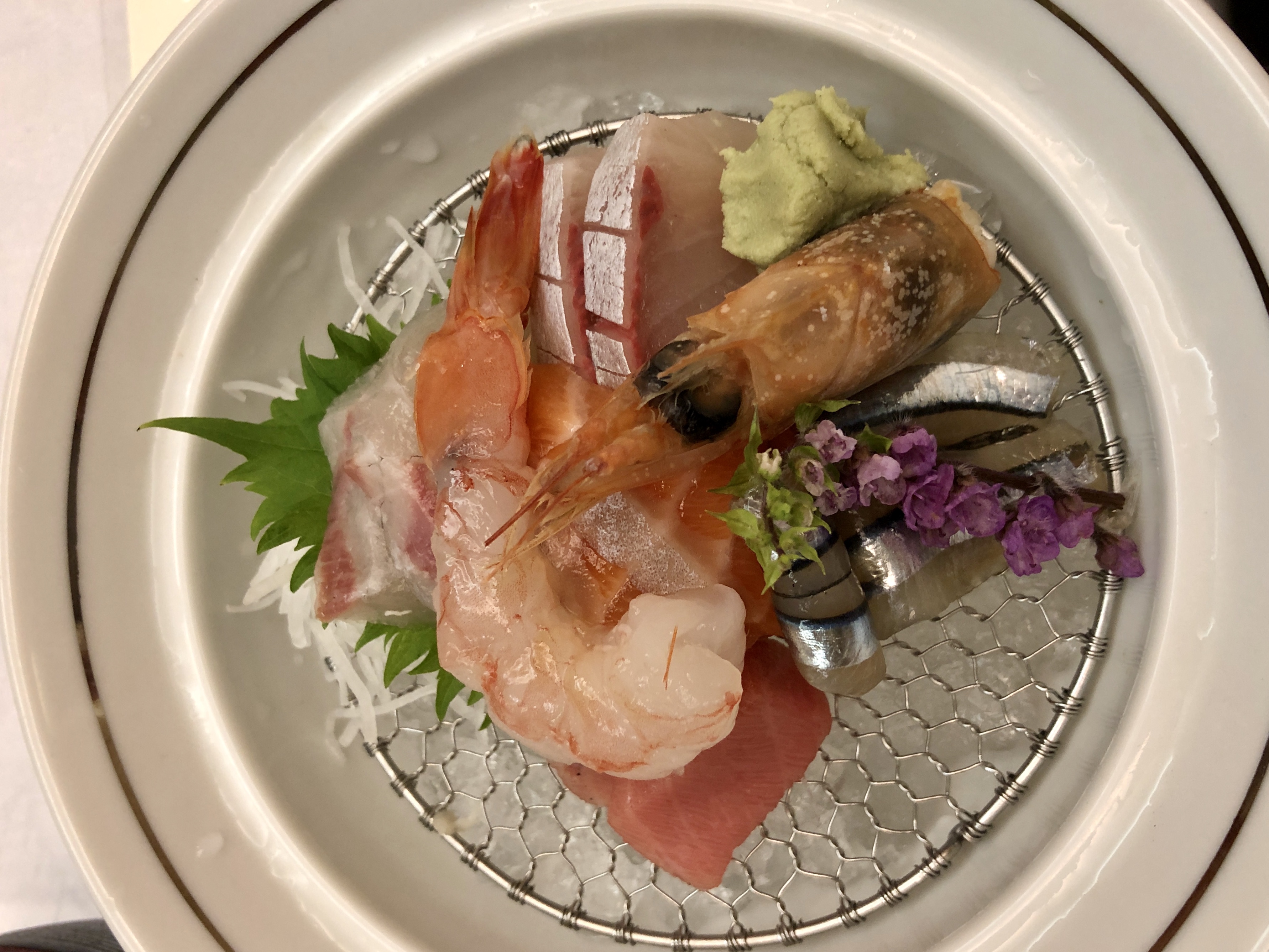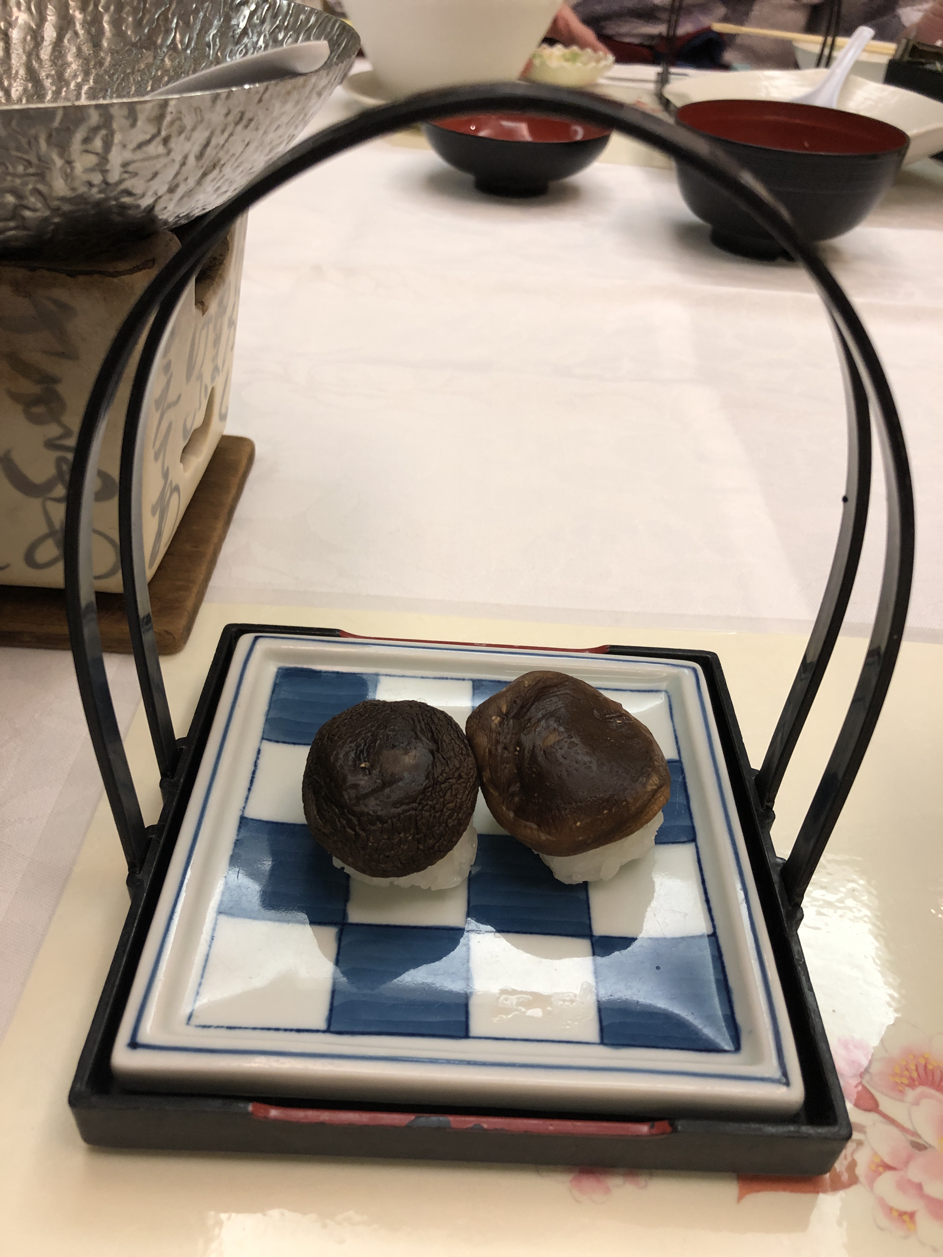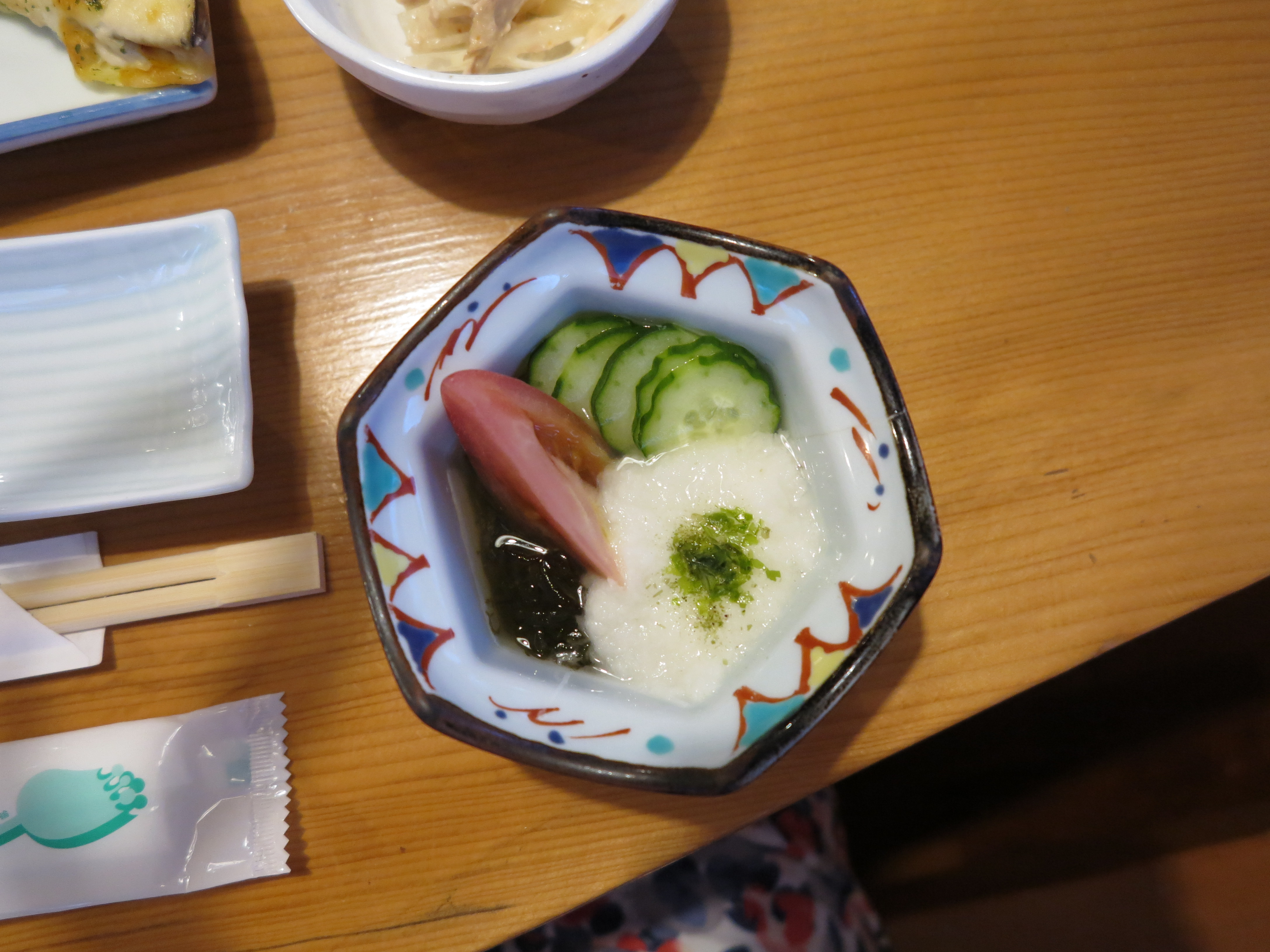 Solen sken hela dagen, det var lagom varmt och vi hade det jättefint. Efter vandringen ägnade vi oss så klart bad, och därefter ytterligare en 8-rättersmiddag, här sparar vi inte på något! Varje rätt är oerhört vackert presenterad, varje kuvert har en liten minikokplatta som man själv kokar sin sukiyaki t ex. Små smakbitar av allehanda slag, med ingredienser som i de flesta fall är okända för mig.