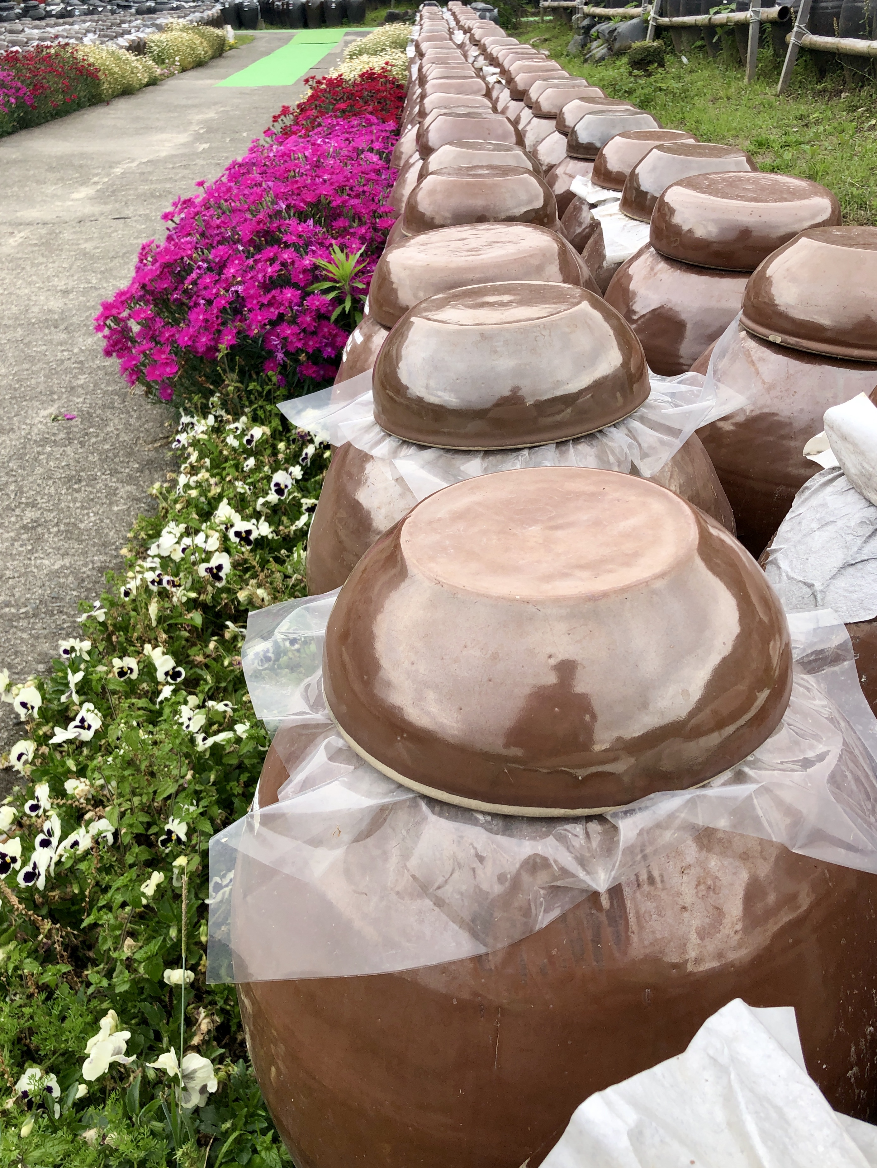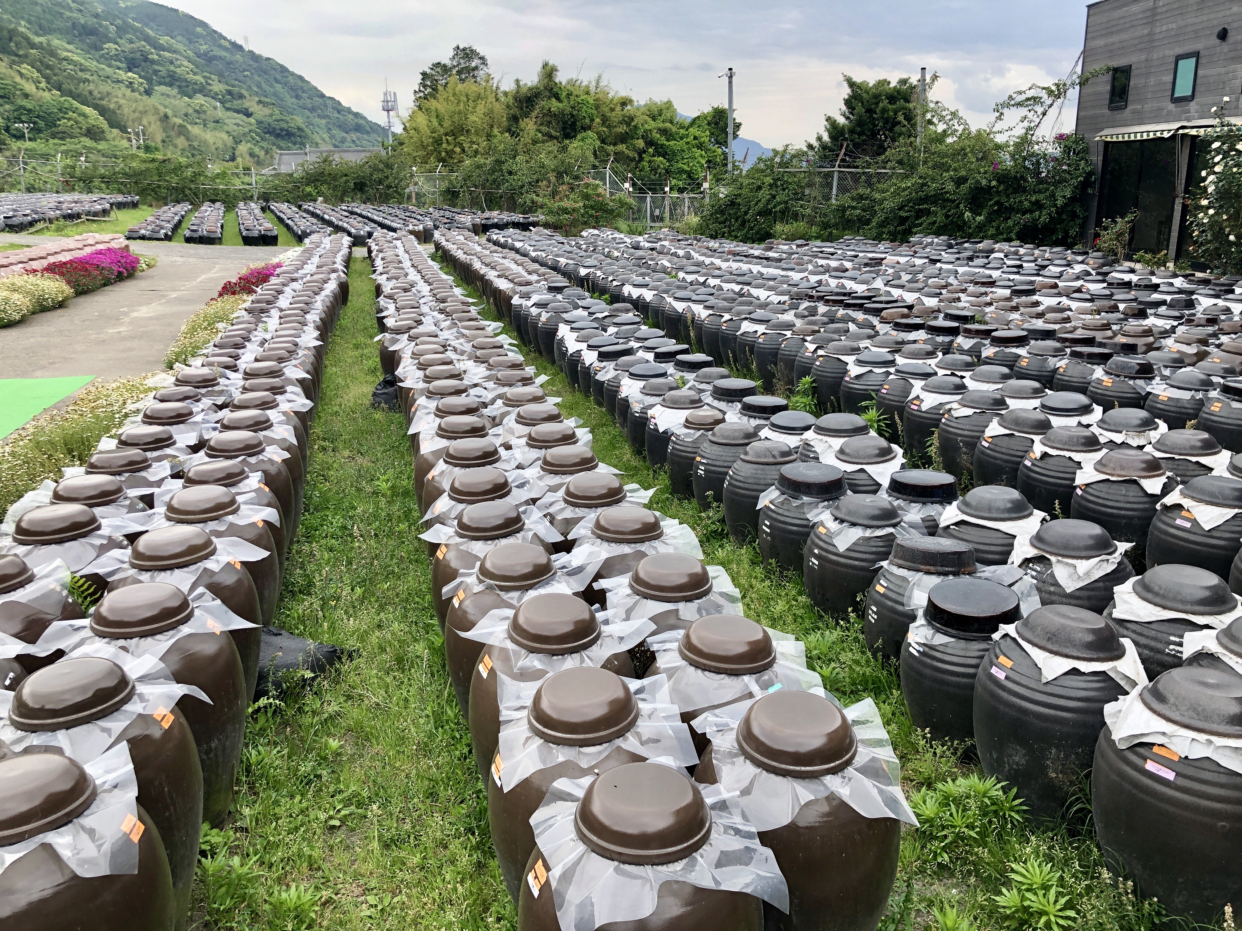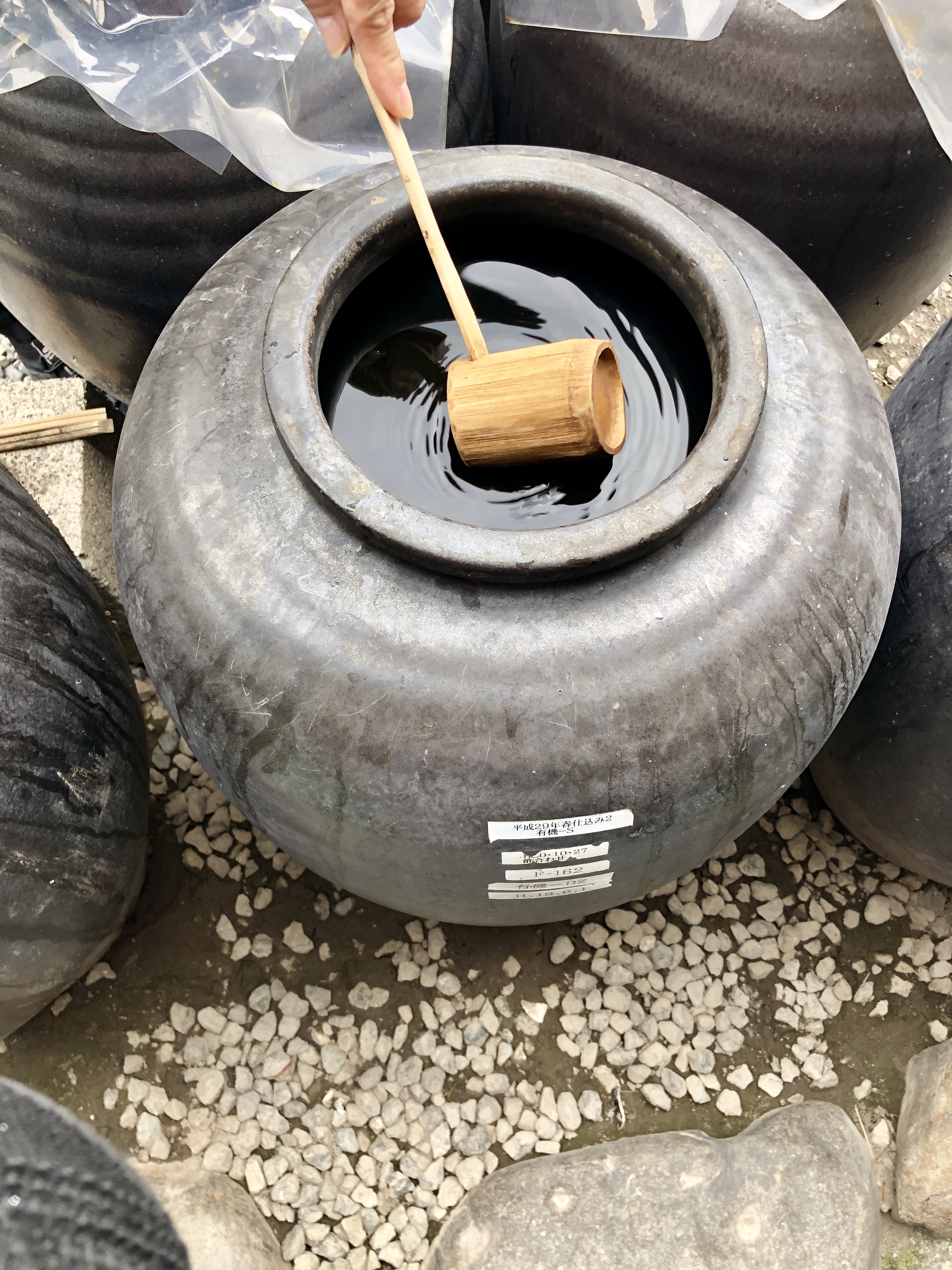 Efter detta besök reste vi vidare till ett vinäger”bryggeri”. Vinägern bildades vid jäsning av ris, som blandats med vatten från bergen, och jäst. Detta jästes i keramikkrukor ute i det fria. Man tappade endast 2 gånger om året, en gång på höst, en gång på vår. Det var viktigt med en specifik lufttemperatur. Vinägern lagrades i krukorna 1, 3 eller 5 år, det fanns även 10-årig vinäger. Givetvis smakade vi på olika varianter, och köpte en pytteliten flaska 5-årig…