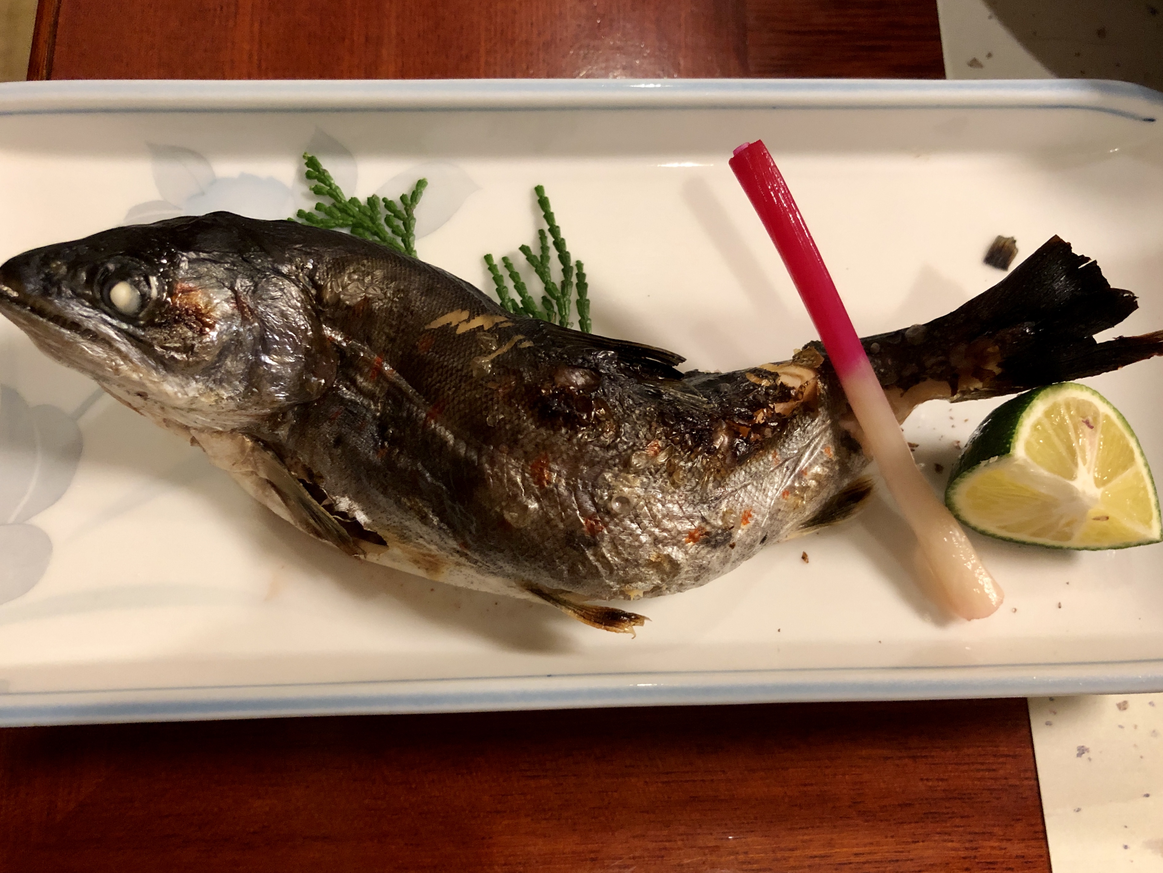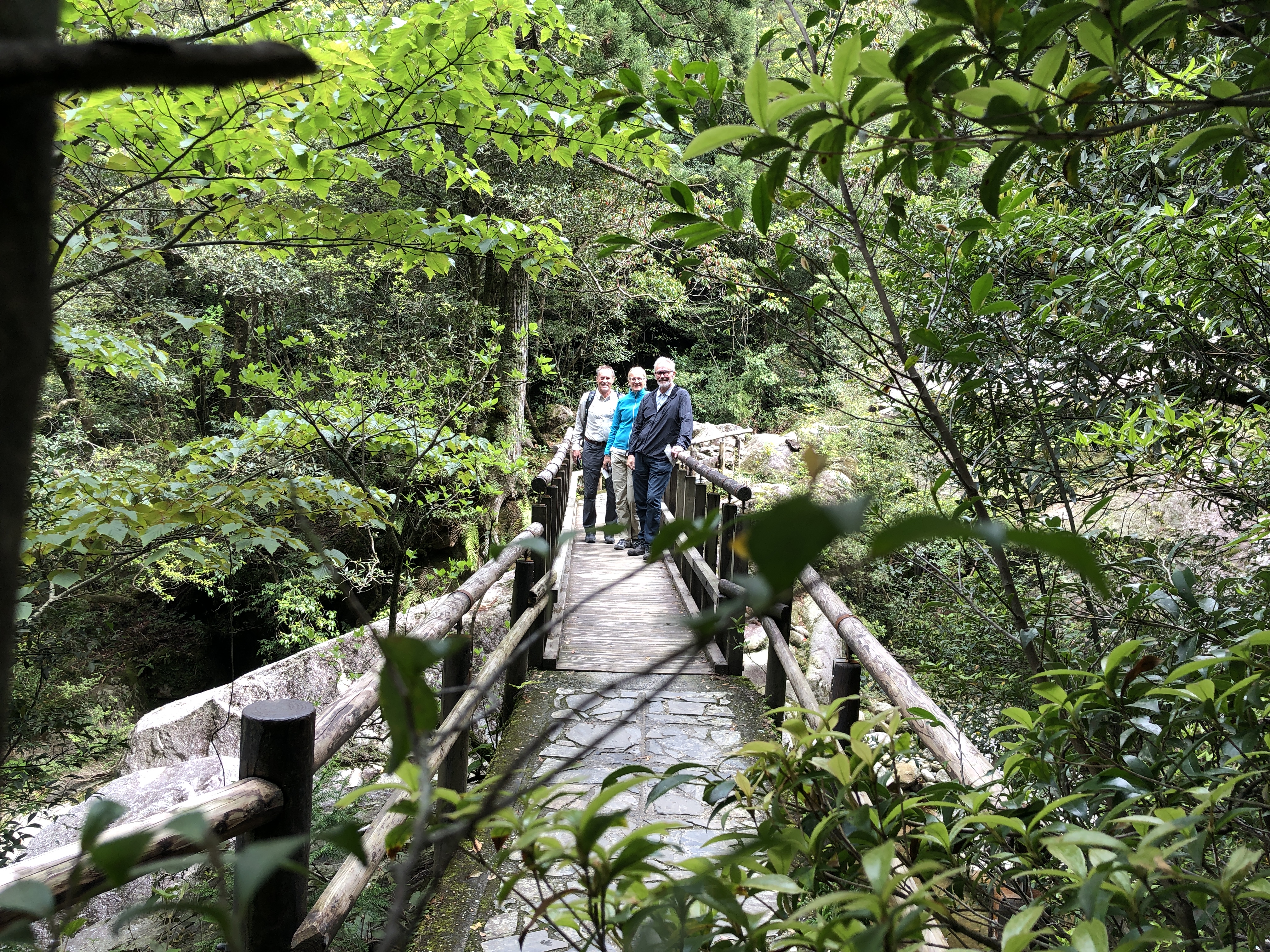 Vi stannar vid en vandringsled som går in i en dalgång uppför berget. Yakushima är känt för sina enormt gamla japanska cedrar, den äldsta som fortfarande lever (!) är fastställd till 7500 år gammal! Det är verkligen enastående! Vill man vandra till den tar det ca 10 timmar. Det är nog tur att den är så pass otillgänglig, annars skulle väl platsen bli nedtrampad! Naru hämtar oss vid halv 5 från vandringsstationen. På kvällen serveras återigen en 7-8-rättersmiddag, där ”piece-de-resistence” är en flygfisk med fenor och allt. Vi rekommenderades att äta fenor och köttet, men undvika huvud och ryggben… lycka till att göra detta med chop-sticks. Vi gjorde vårt bästa, men pilligt är det!