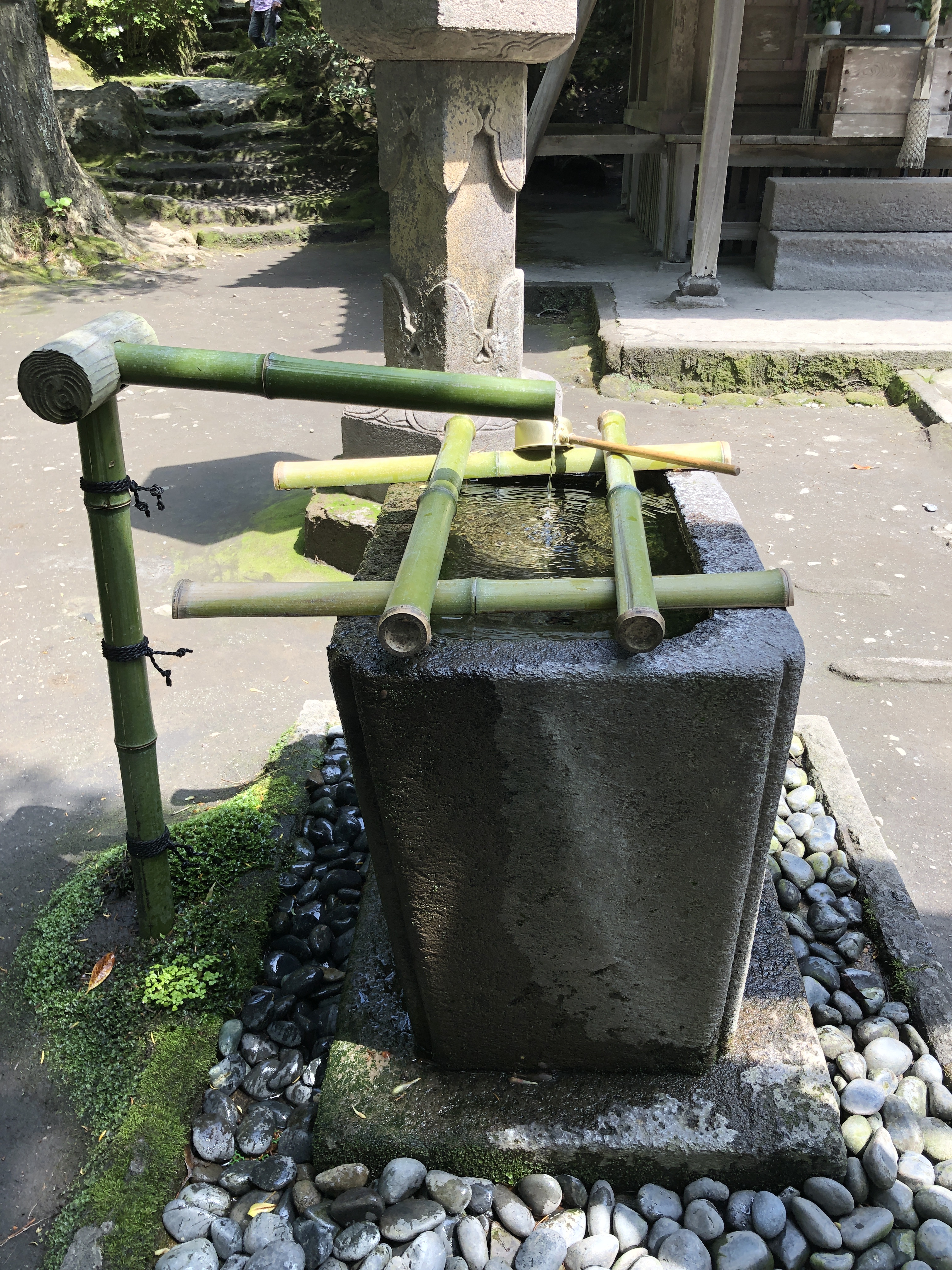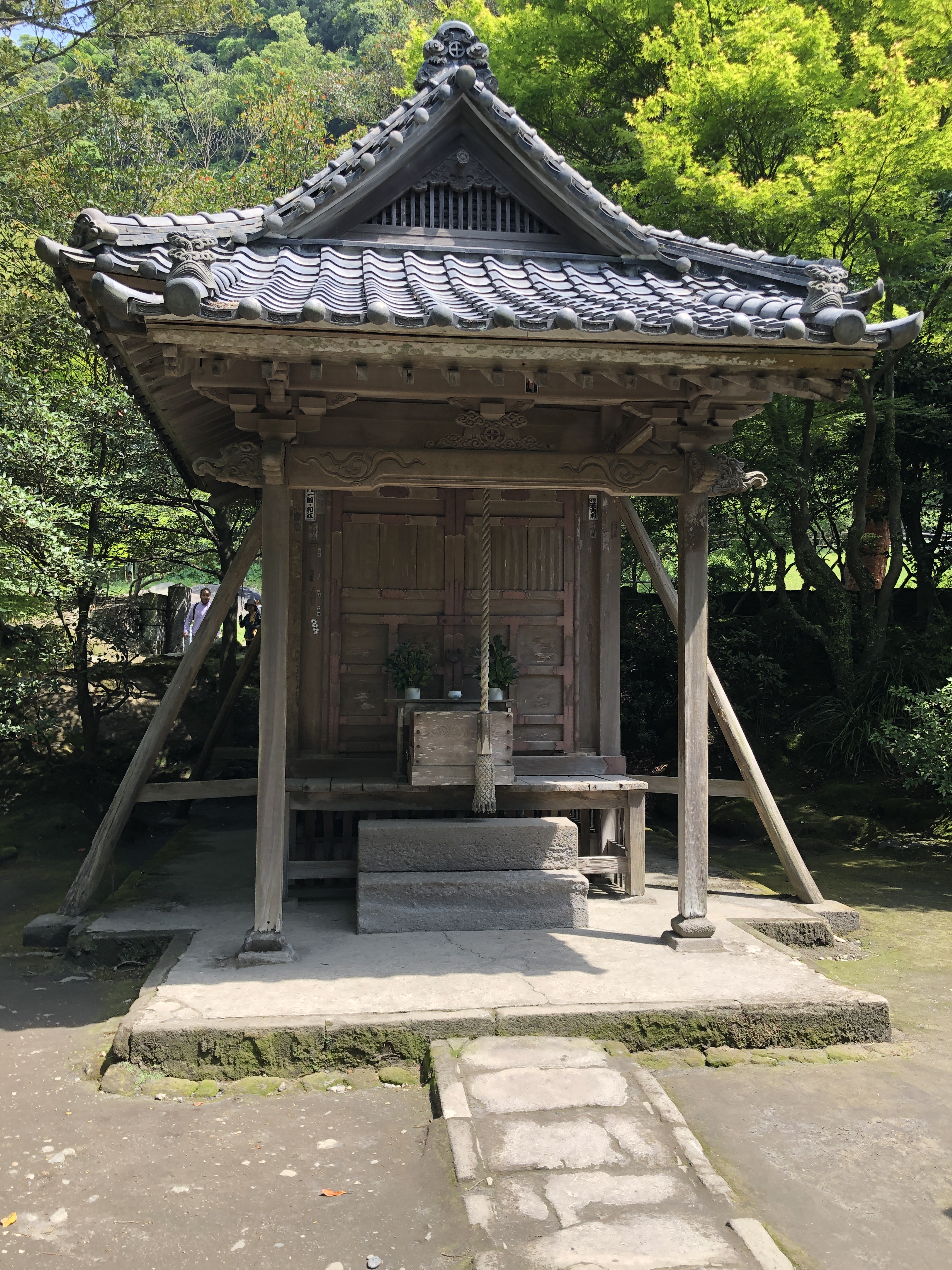 I Shintoismen finns inga skrifter och ingen gud. I Japan finns inget begrepp motsvarande det svenska begreppet avseende religion. Det är en livshållning, en levande bit av japansk kultur. Man går till helgedomen för att ha en kommunikation med en ande. I helgedomen finns en shintopräst, som man kan bli välsignad av. Men vanligt är att man hälsar på anden genom att buga 2 gånger, klappa i händerna 2 gånger, be en bön, och buga sig ytterligare en gång, sen är det klart. Anden kan vara på flera ställen på samma gång. Varje helgedom är tillägnat något särskilt, har sin egen specialitet så att säga. Helgedomen i Tsuwano var ägnat affärsmässighet. Dit gick man om för att be en bön och få en välsignelse för bättre tur i affärerna t ex.