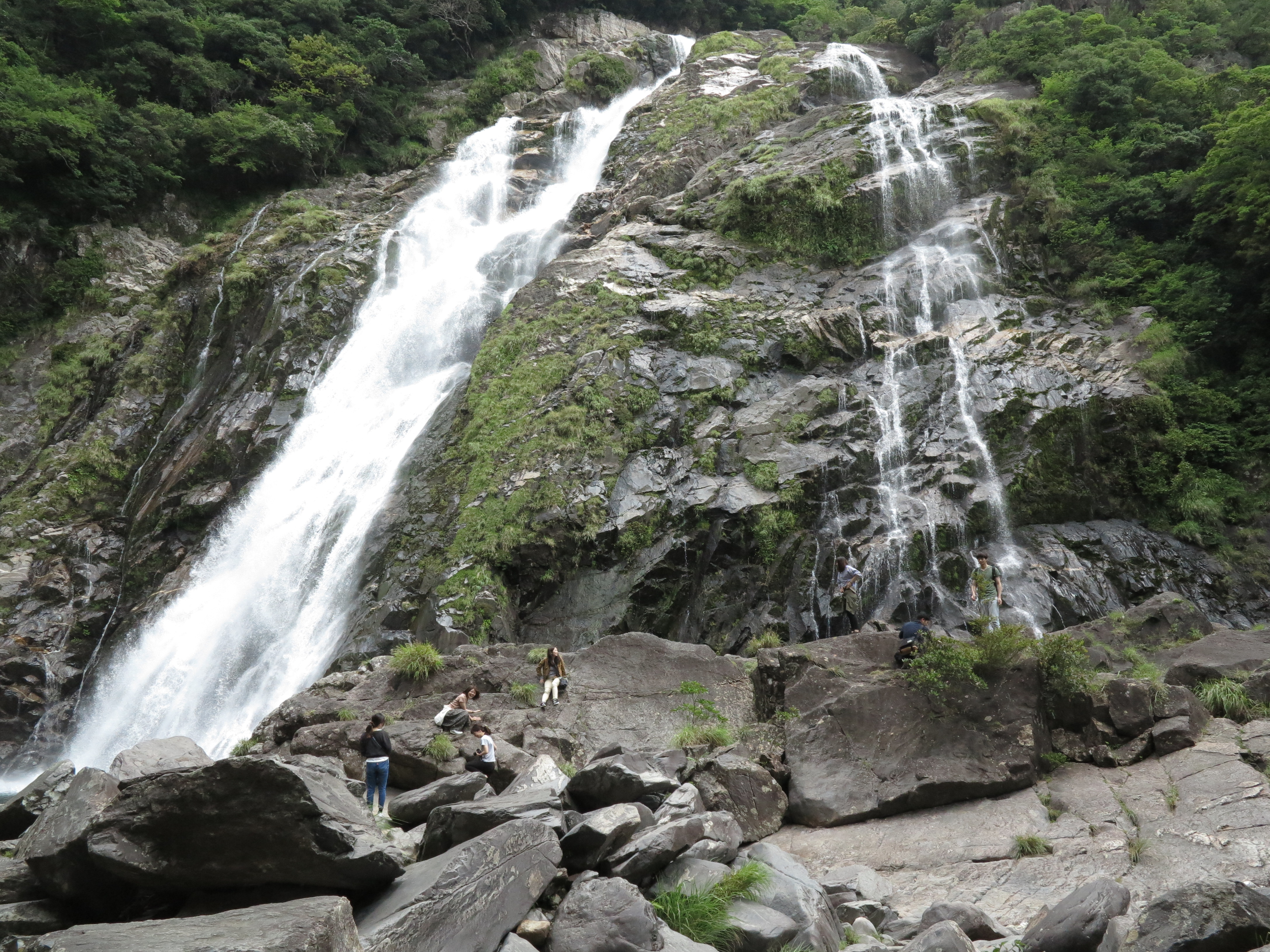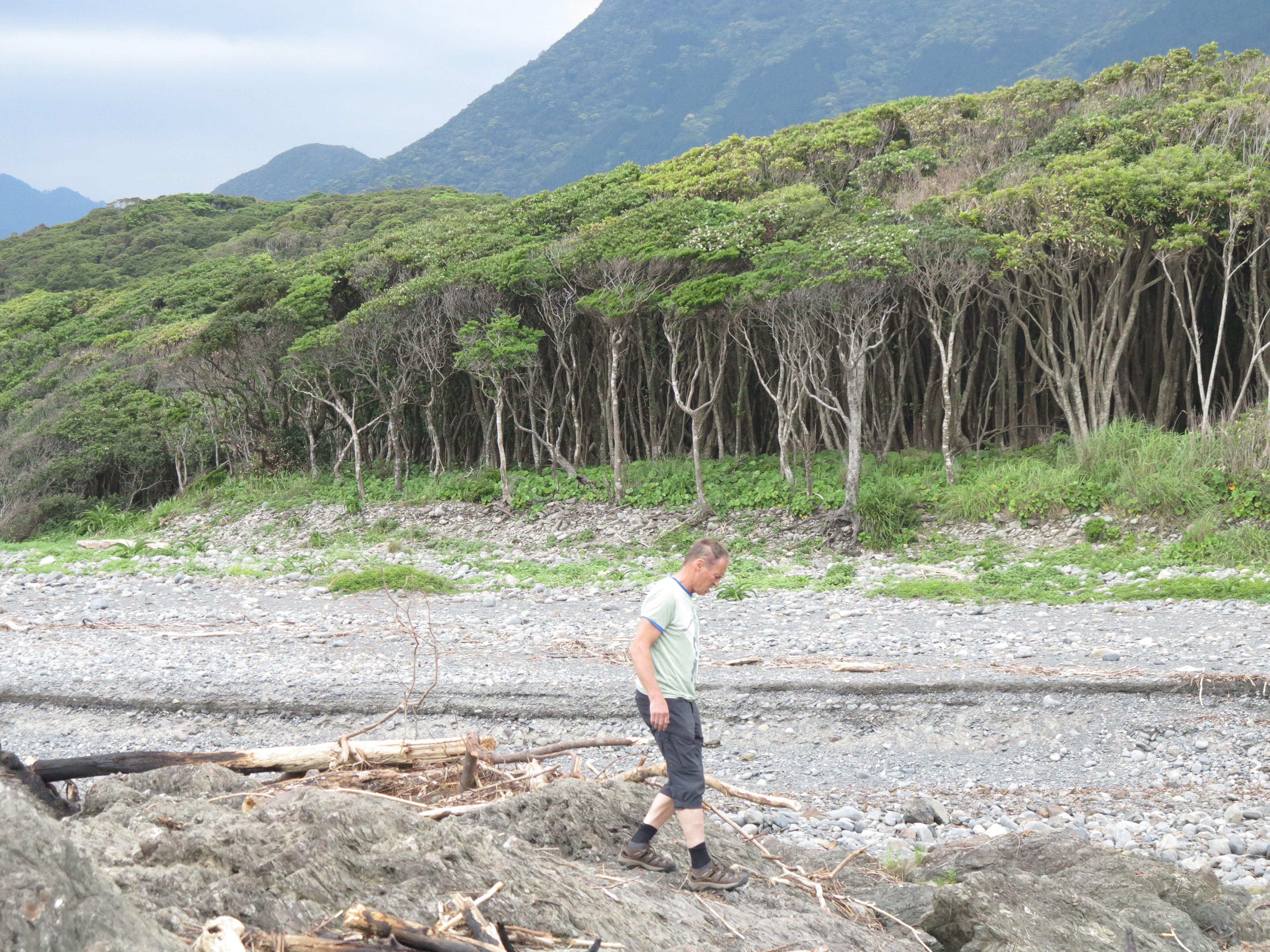 Väl incheckade, skjutsade han oss till livsmedelsbutiken, så vi kunde inhandla lunch, och därefter upp i de fantastiska bergen! Gröna gröna branta berg, djungel som klättrar uppåt! Yakushima har 30 (?) berg med toppar över 1000 meter, de kan även få snö på vintern.